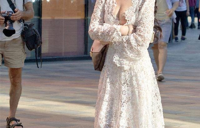 小姐姐搭配的是一雙白色的高跟鞋,當然如果不喜歡的話還可以搭配黑色的高跟鞋。高跟鞋露出纖細的腳裸搭配飄逸的裙擺,光是下半身就讓人移不開視線了,何況還有上半身的深v設計,所以穿上這款裙子就算你自己想在人群中低調行走,這款裙子也不允許了。