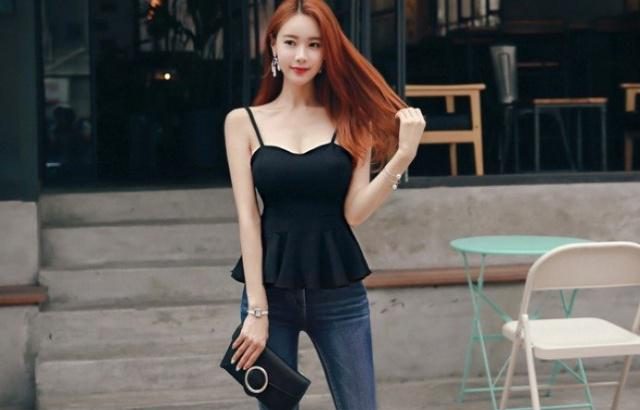 矮個子的小姐姐也可以嘗試弔帶衫的穿搭,就像這一個小姐姐,黑色的弔帶上衣,搭配黑色的短褲,顯得特別的性感。小姐姐的身材纖瘦,雖然個子不高,但是這身穿搭卻讓小姐姐的腿看起來特別修長,十分迷人。